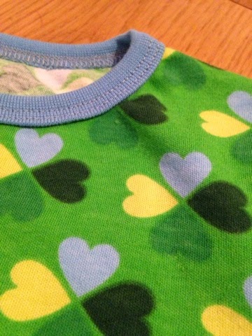 Sanna trenger noen barnehagebukser, så jeg sydde ei som passa til ei t-skjorte jeg sydde i sommer.